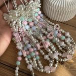 بند و آویز گل شمعدونی صورتی و سفید