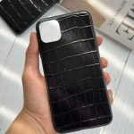 قاب موبایل آیفون چرم طبیعی دندون موشی مشکی