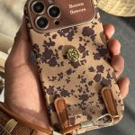 قاب موبایل آیفون گل دریایی جیر سنگشور قهوه ای + بند ست