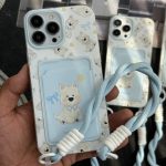 قاب موبایل آیفون سگ پاپی آبی بندست جاکارتی