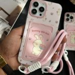 قاب موبایل آیفون خرگوش بانی گاردن گل رز ریز جاکارتی و بندست