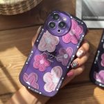 قاب موبایل آیفون گل لوندر بنفش آبرنگی محافظ لنزدار