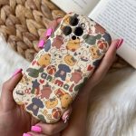 قاب موبایل آیفون خرس قهوه ای مینیمال سیلیکونی + آویز