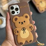 قاب موبایل آیفون خرس قهوه ای مینیمال سیلیکونی + آویز
