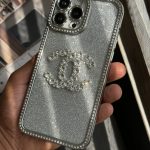 قاب موبایل آیفون شنل نگین دار برجسته براق نقره ای