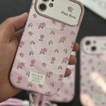 قاب موبایل آیفون شاخه گل رز صورتی بدون بند