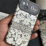 قاب موبایل آیفون دیور گلدار نقره ای محافظ لنزدار