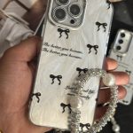 قاب موبایل آیفون بونات پاپیون شاینی نقره ای تک مروارید