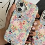 قاب موبایل آیفون اسکارف گل آبی مه آلود + بندست
