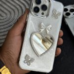 قاب موبایل آیفون پاپیون بزرگ تک مروارید قلب ریز