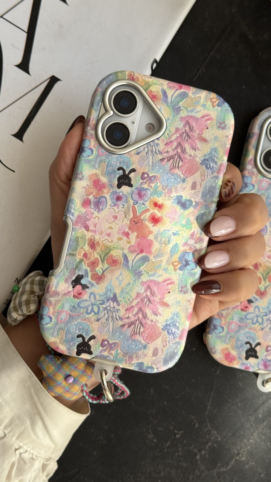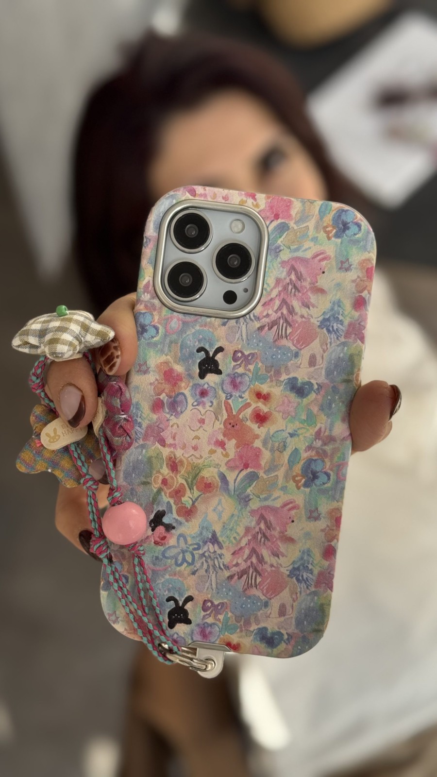 قاب موبایل آیفون خرگوش واندرلند + بندست گل پارچه‌ای یکی از خاص‌ترین و جذاب‌ترین انتخاب‌ها برای کسانی است که عاشق طرح‌های فانتزی، شخصیت‌های کارتونی و رنگ‌های ملایم هستند. این قاب با ترکیب تصویرهای رنگارنگ، گل‌ها، خرگوش‌های کوچک و جزئیات ظریف، ظاهری زیبا و منحصر‌به‌فرد ایجاد کرده که نگاه هر کسی را به خود جلب می‌کند. سبک واندرلند در این قاب باعث شده که حس جادو، لطافت و خیال‌پردازی به گوشی شما اضافه شود.