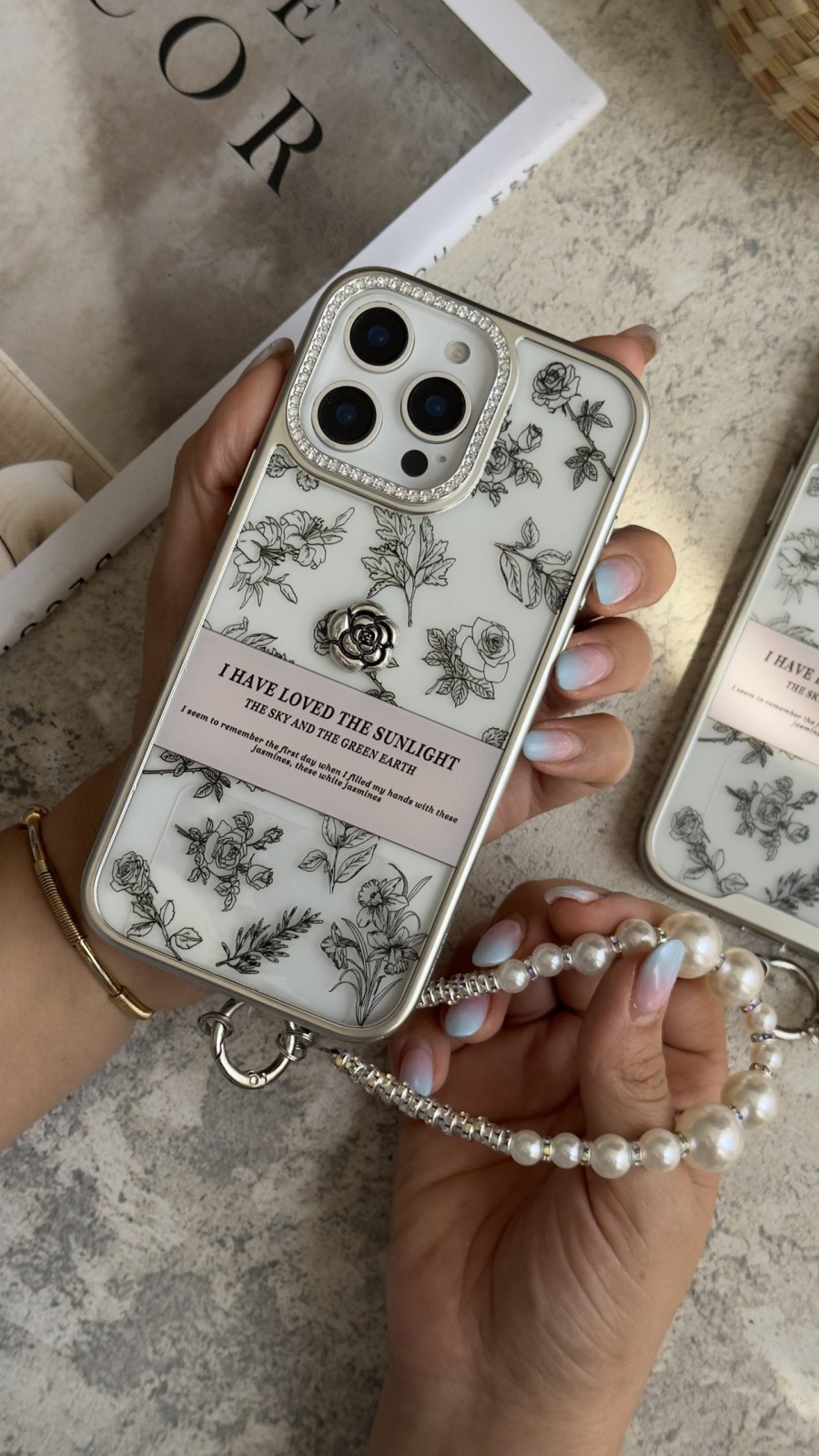 قاب موبایل آیفون گل فلاورز سان لایت + بندست