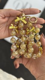 بند و آویز شامپاینی پاپیون یکی از خاصترین و لاکچریترین اکسسوریهای موبایل است که ترکیبی از ظرافت و درخشش را در کنار هم دارد. طراحی این آویز با استفاده از مهرههای طلایی شفاف و پاپیونهای فلزی براق، جلوهای چشمنواز به گوشی شما میدهد و استایلتان را متمایز میکند.