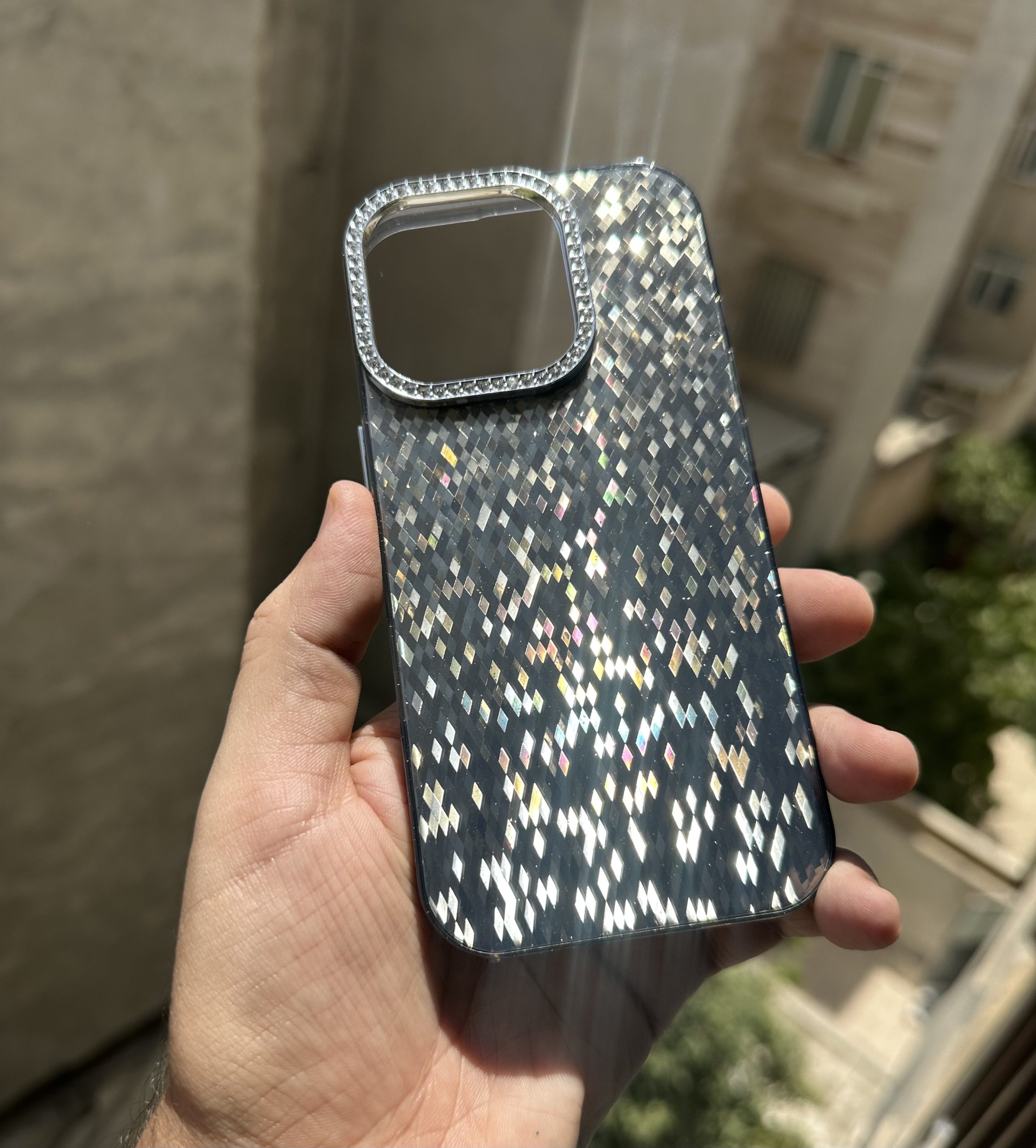 دور لنز این قاب بهصورت شاین و برجسته طراحی شده و علاوه بر زیبایی، محافظت کاملی از لنز دوربین در برابر خط و خش و ضربه ایجاد میکند. نگینهای ظریف و باکیفیت با دقت بالا کار شدهاند و در استفاده روزمره جدا نمیشوند. متریال مقاوم قاب، گوشی را بهخوبی پوشش میدهد و در عین حال خوشدست و سبک است.