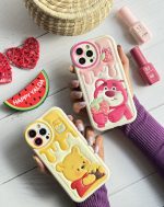 قاب موبایل آیفون برجسته خرس لوتسوهاگین و خرس پو محافظ لنزدار