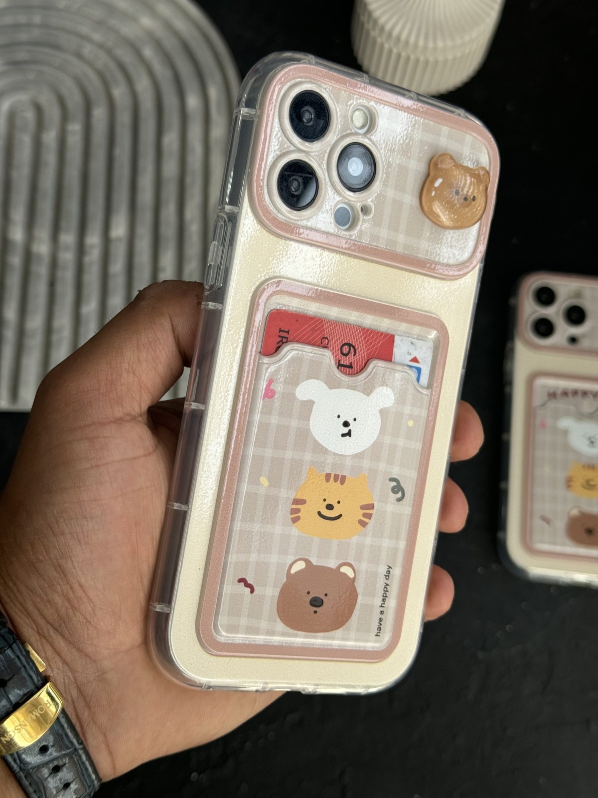 قاب موبایل آیفون جاکارتی خرسی بند ست