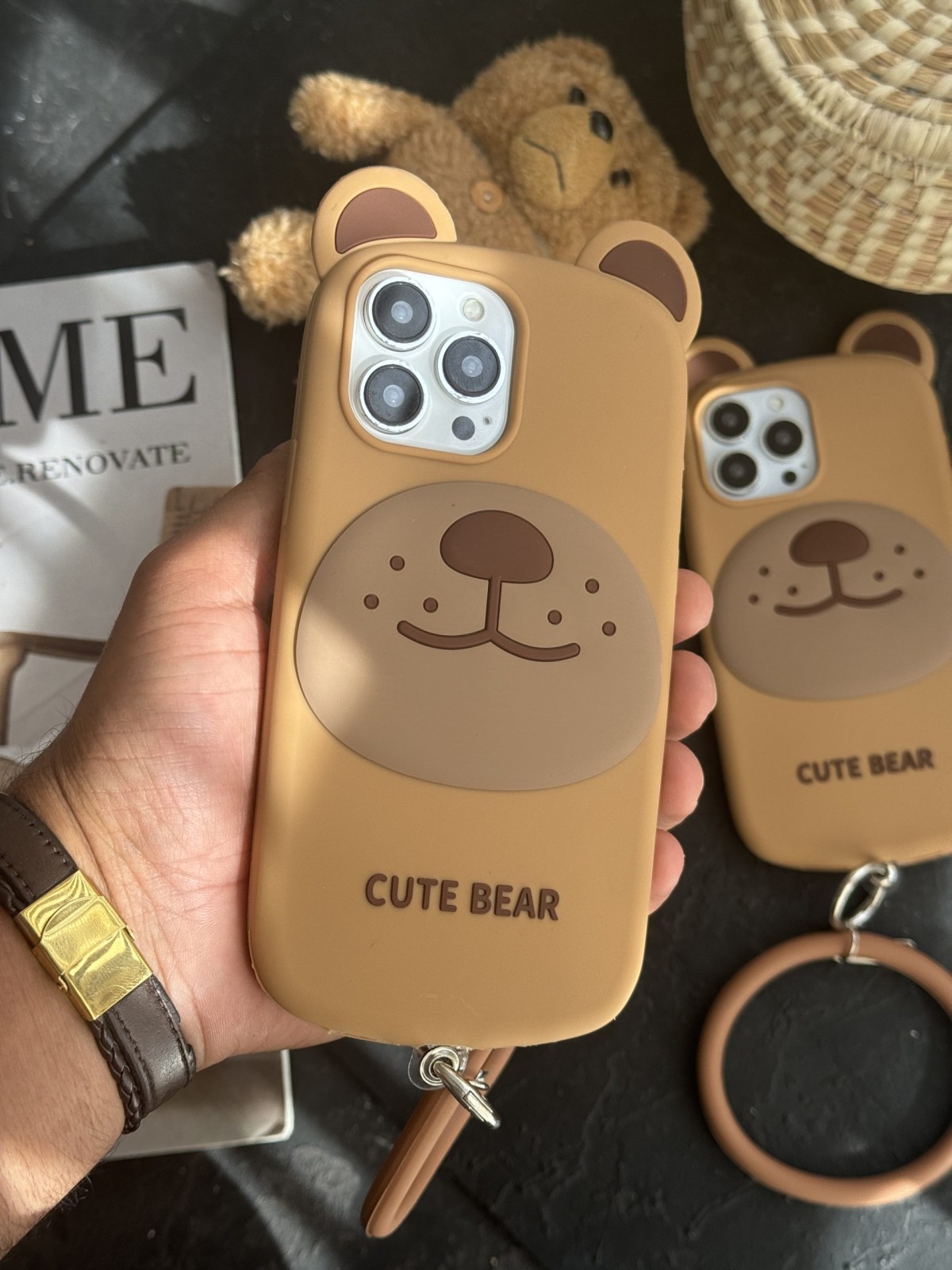قاب موبایل آیفون خرس بانمک سیلیکونی همراه آویز ست