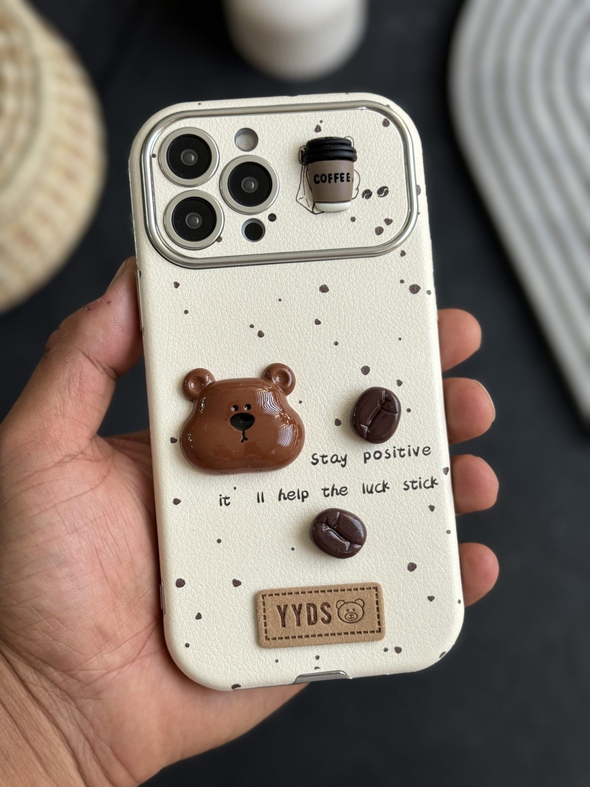 قاب موبایل آیفون خرس دانه قهوه محافظ لنزدار