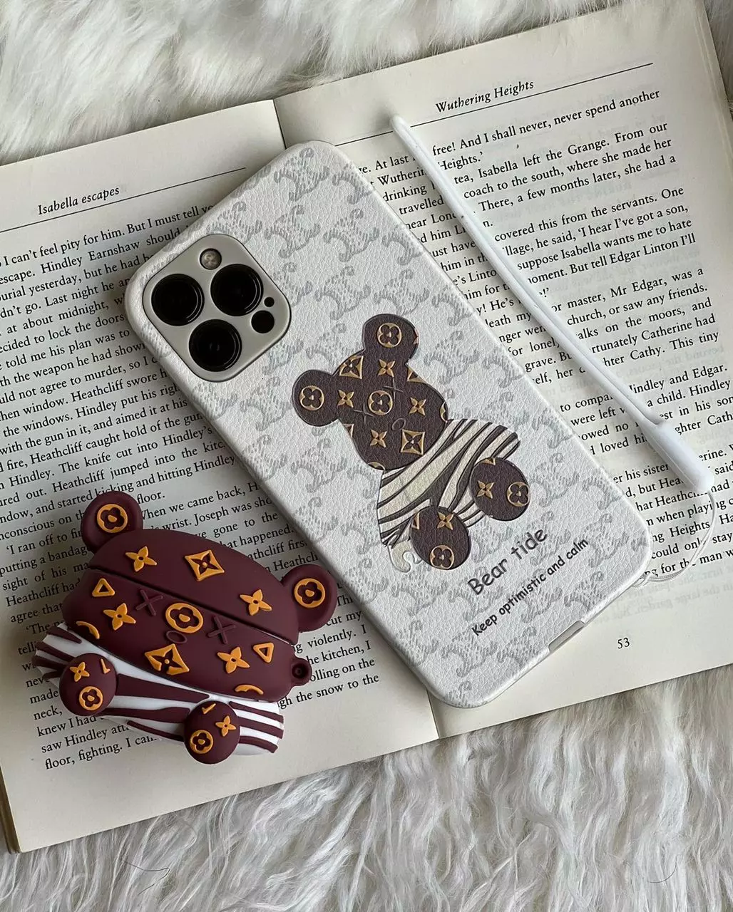 قاب موبایل آیفون خرس راه راه زبرا محافظ لنزدار + بند سیلیکونی