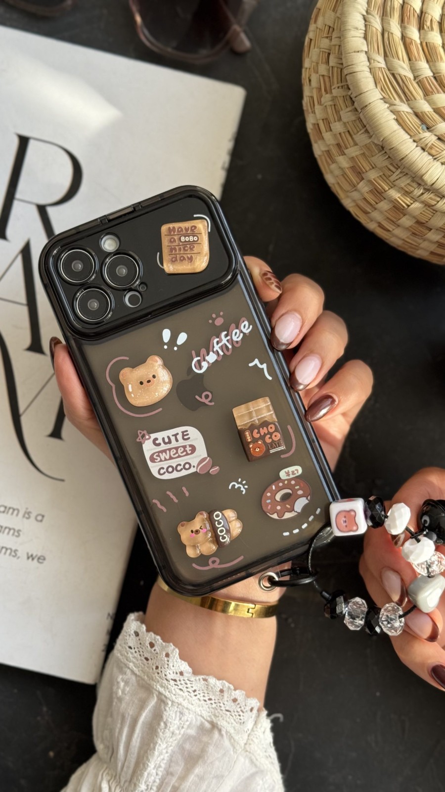 قاب موبایل آیفون خرس چوکوبوبو کافی دونات یک انتخاب کاملاً خاص و فانتزی برای کسانی است که از قابهای معمولی خسته شدهاند و علاقهمند به طرحهای ژاپنی–کرتونی و سبک کیوت هستند. این قاب با ترکیب خرس چوکوبوبو، المانهای کافی، شکلات و دونات، یک تم فانتزی شیرین و جذاب ایجاد کرده که توجه هر کسی را جلب میکند. طراحی برجسته 3D باعث شده قاب علاوهبر ظاهر زیبا، حس دست گرفتن بسیار جذابی داشته باشد.