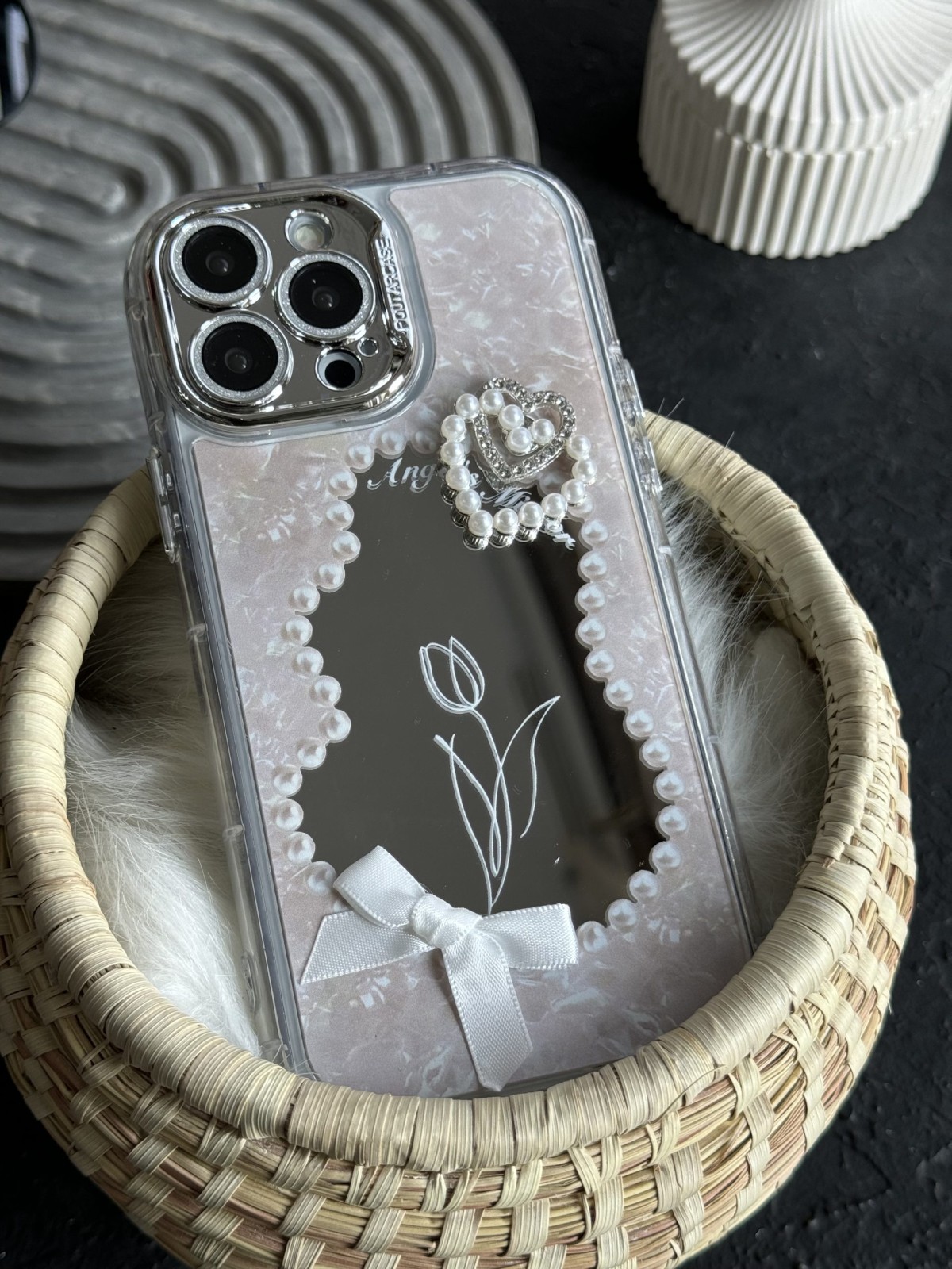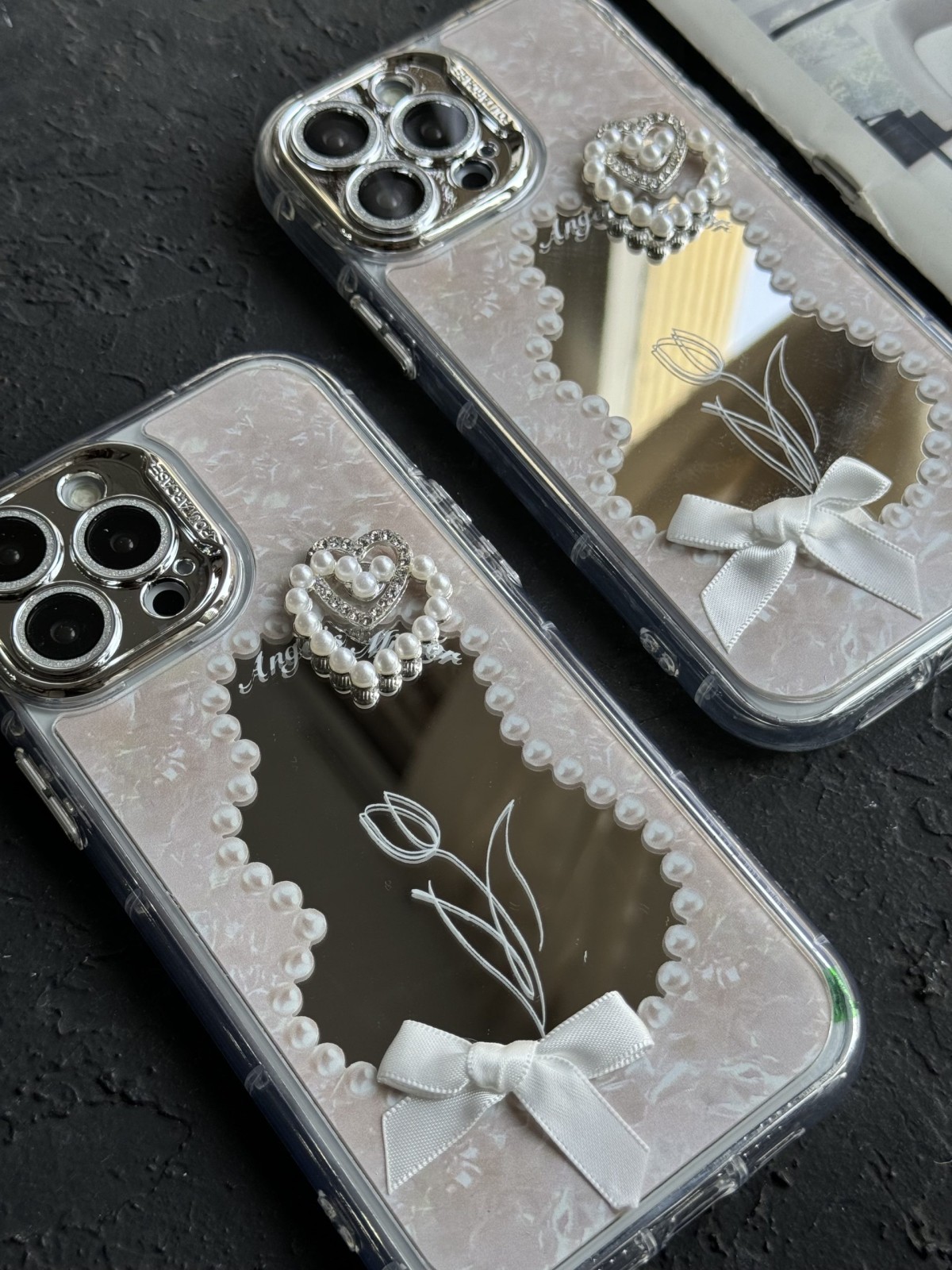 قاب موبایل آیفون دوقلب آیینه ای گل لاله