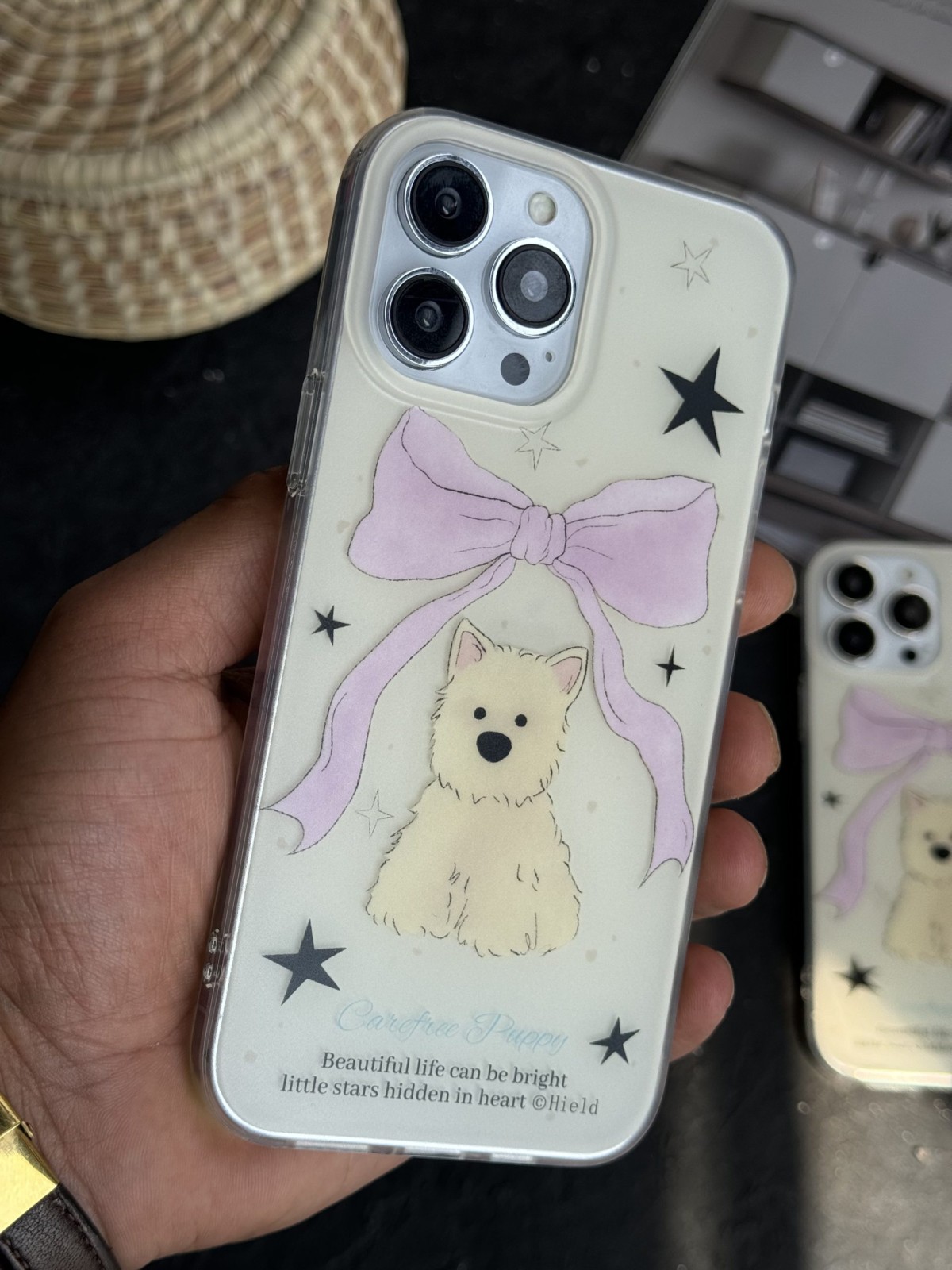 قاب موبایل آیفون سگ پاپی ستاره پاپیون صورتی