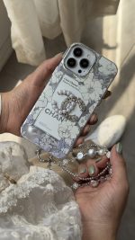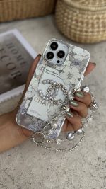 قاب موبایل آیفون شنل گل اسپرینگ تایم نگین مروارید + بند ست