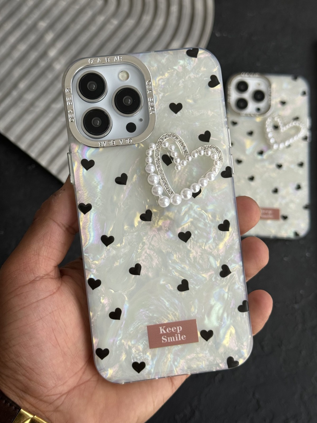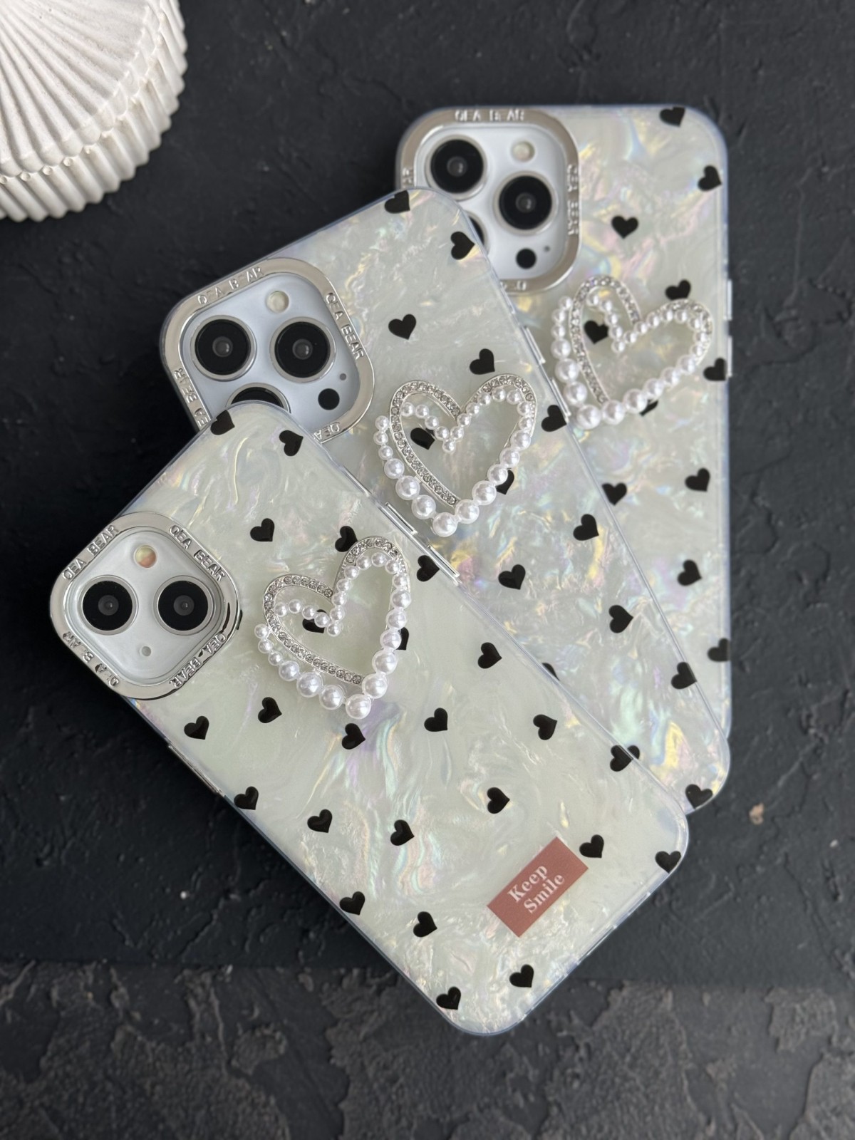 قاب موبایل آیفون قلب ریز خال خالی صدفی