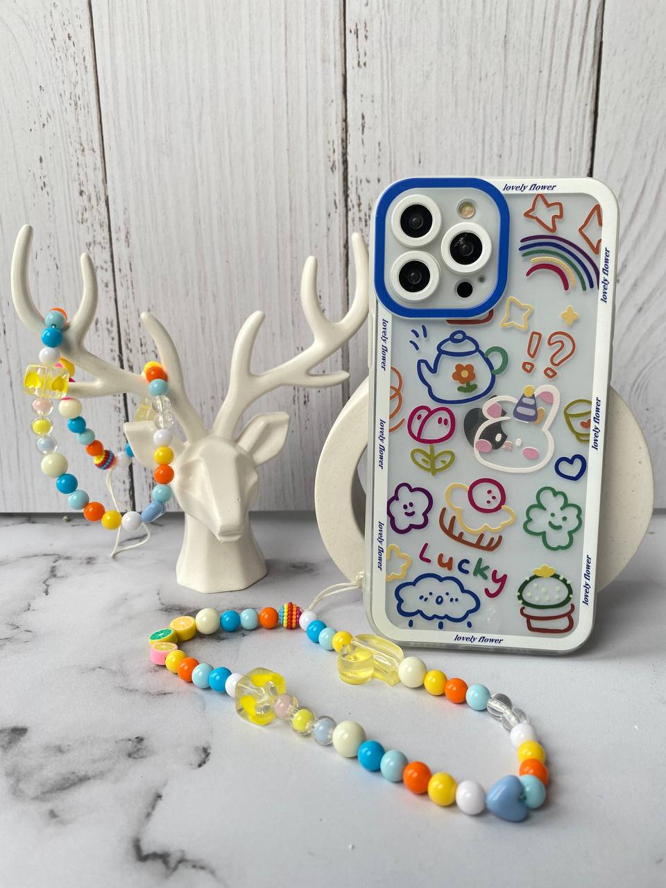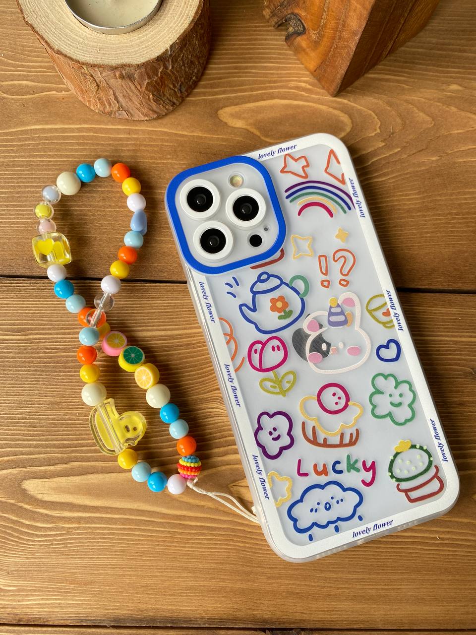 قاب موبایل آیفون لاکی پاستیلی پشت بیرنگ + بدون بند