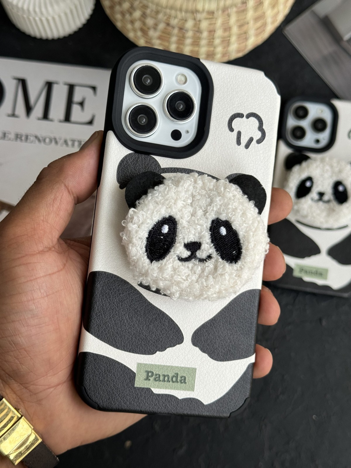 قاب موبایل آیفون پاندا پاپسوکت پشمالو