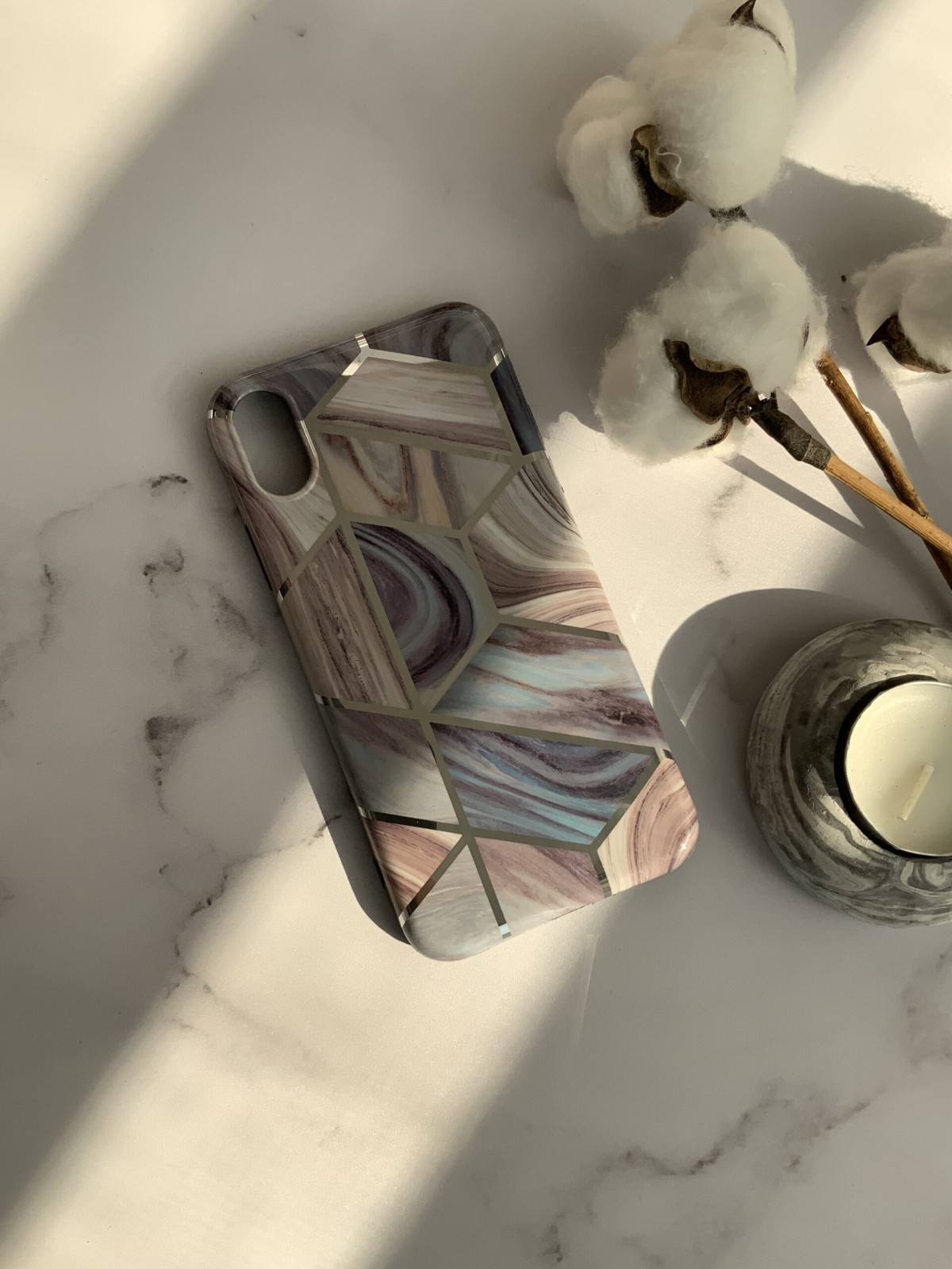 قاب موبایل آیفون کاشی ماربل آبی و بنفش