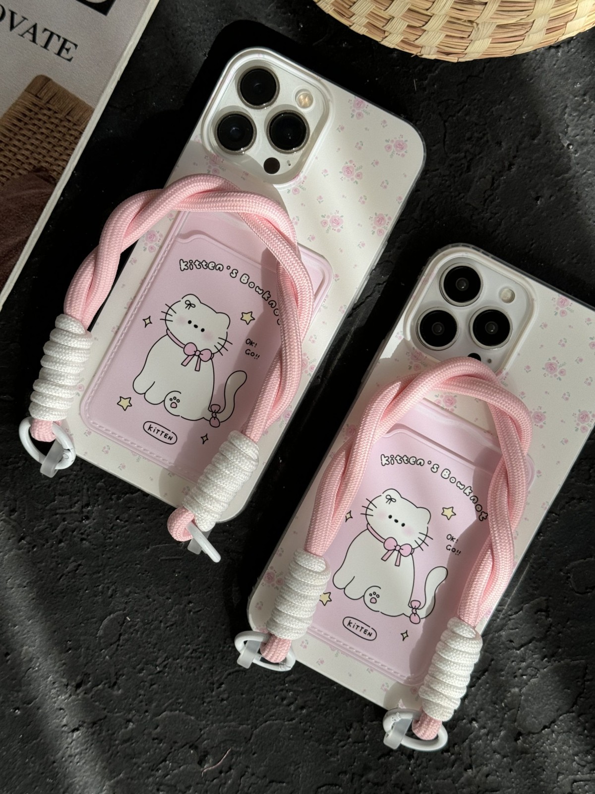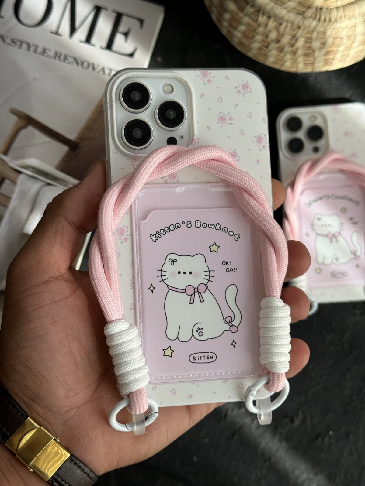 قاب موبایل آیفون گربه گل گلی کیچن جاکارتی بنددار