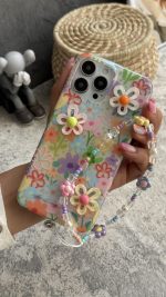 روی این قاب از گلهای بابونه برجسته استفاده شده که علاوه بر زیبایی، حسی سهبعدی و خاص به آن میبخشد. رنگهای متنوع و زنده باعث میشوند کاور با هر نوع استایل و سلیقهای هماهنگ باشد. به همراه این قاب یک بندست مهرهای رنگی و دستساز نیز ارائه میشود که هم جنبهی تزیینی دارد و هم استفادهی کاربردی؛ شما میتوانید گوشی خود را راحتتر حمل کنید و استایلی دخترانه و دلنشین داشته باشید.