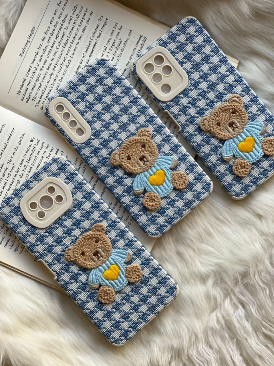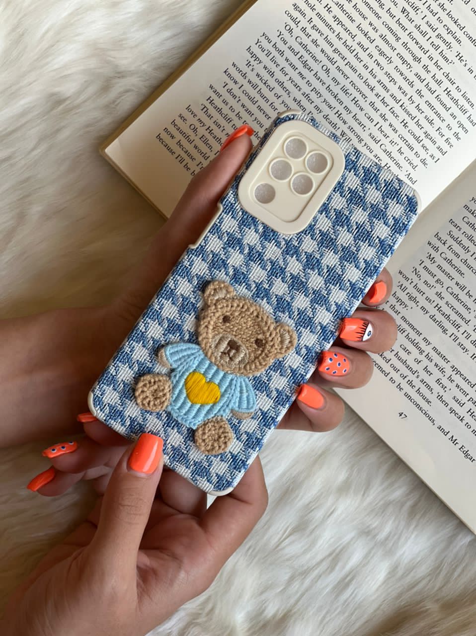قاب موبایل سامسونگ خرس تدی کاموایی پارچه ای محافظ لنزدار