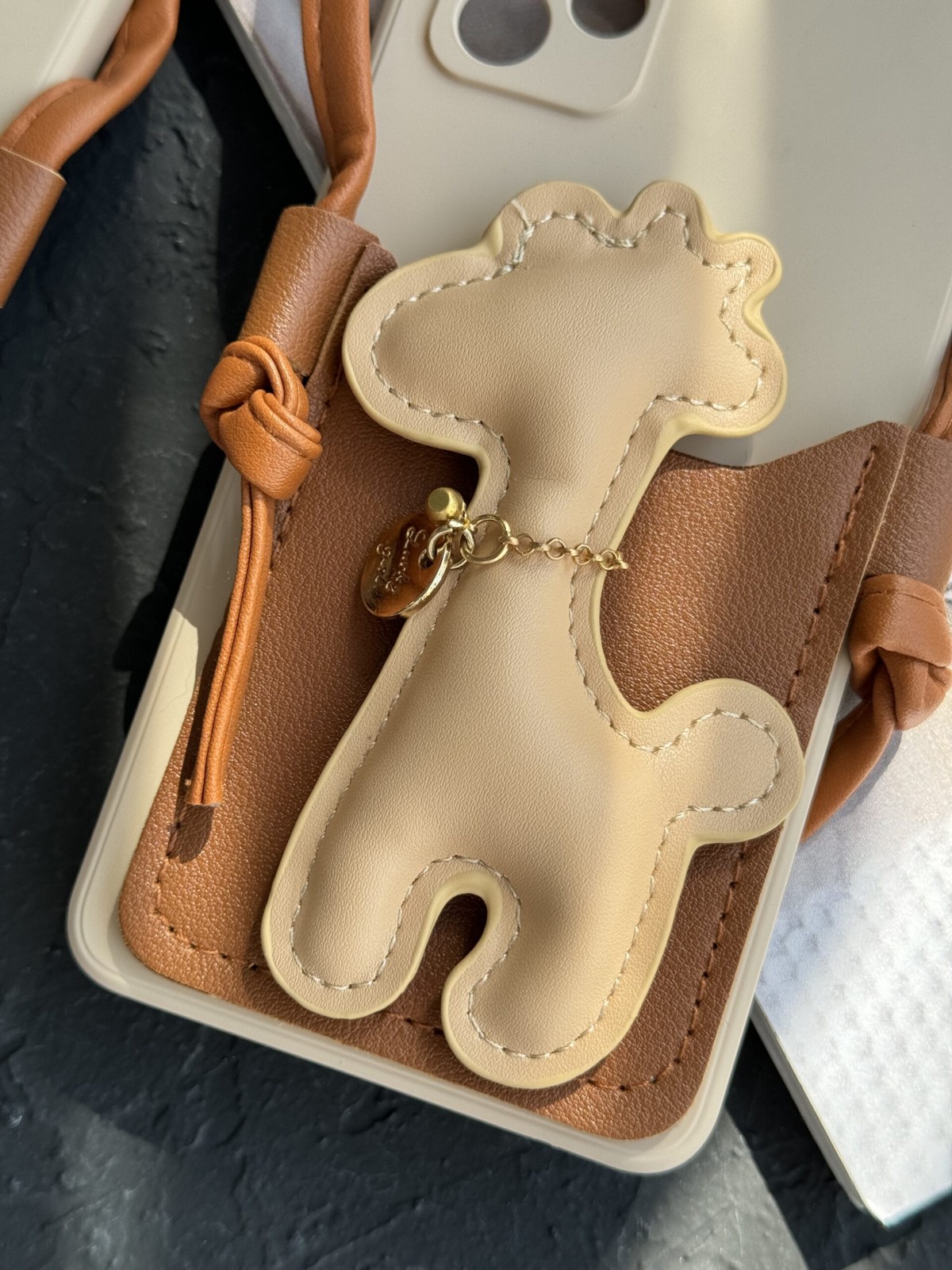 قاب موبایل سامسونگ زرافه مینیمال چرمی جاکارتی و آویز بلند محافظ لنزدار