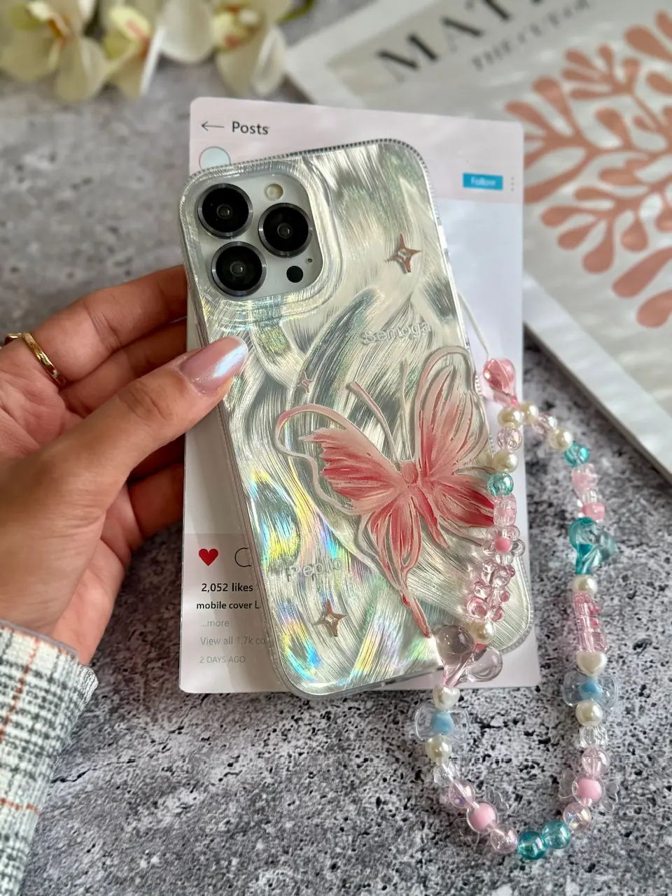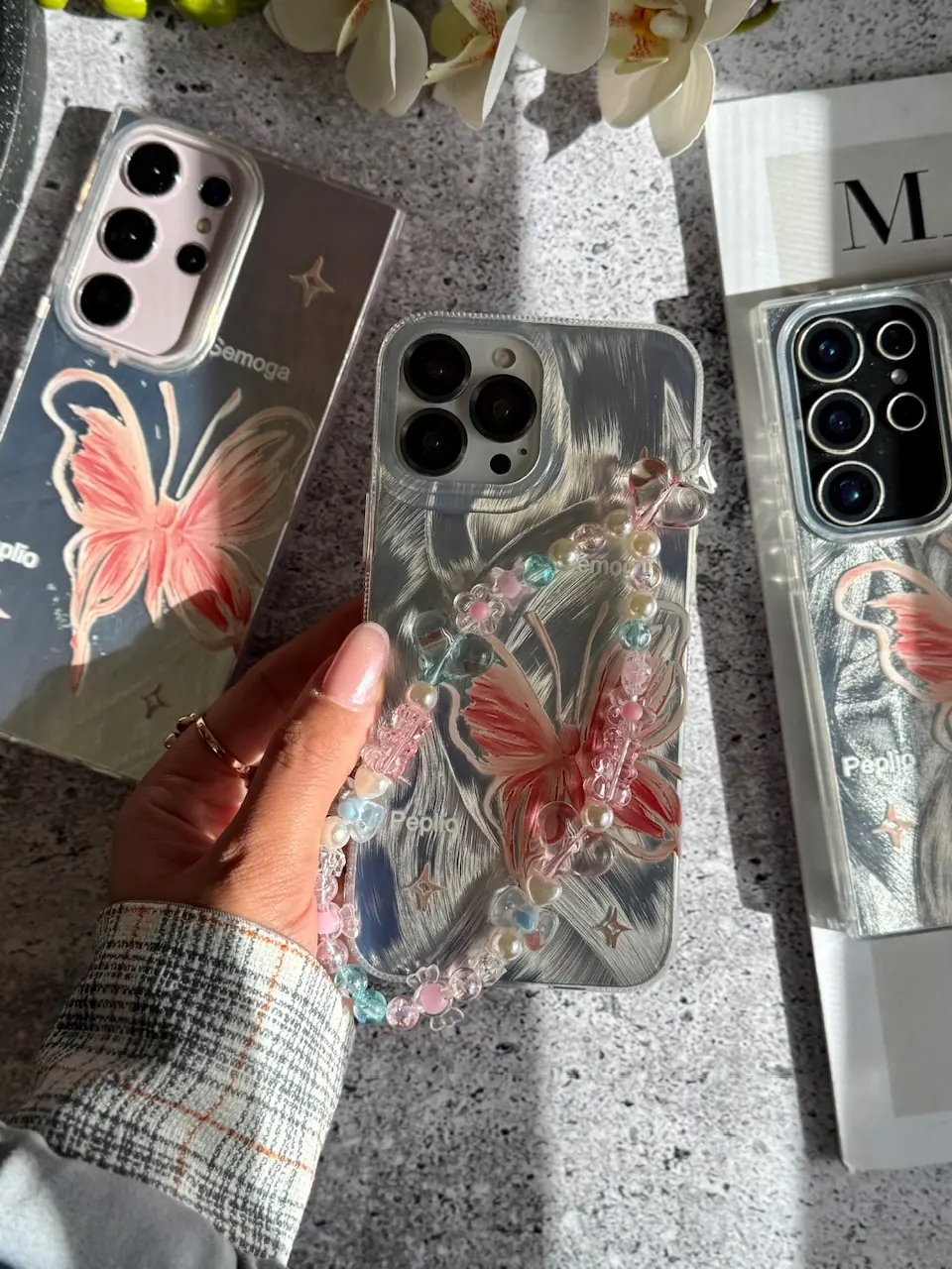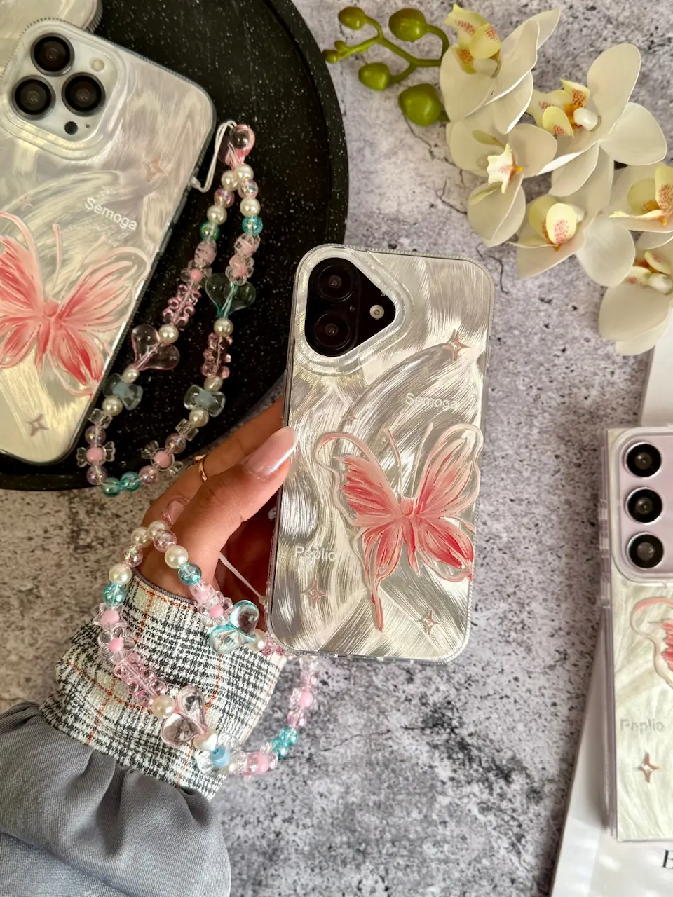 قاب پروانه رز فلای با آویز آیفون (کدC2147)