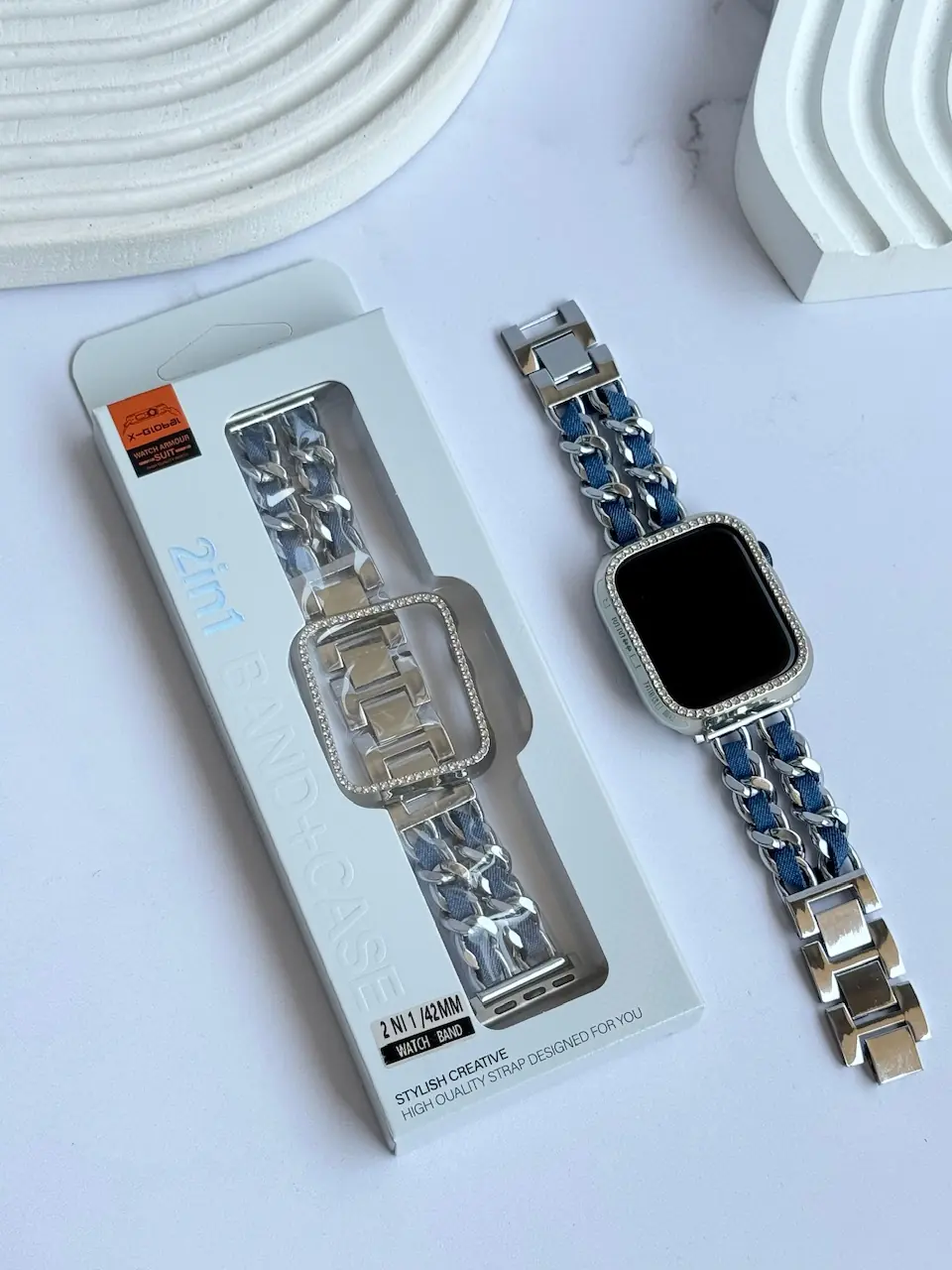 بند اپل واچ جین کارتیر با گارد نگینی (کدw5026)