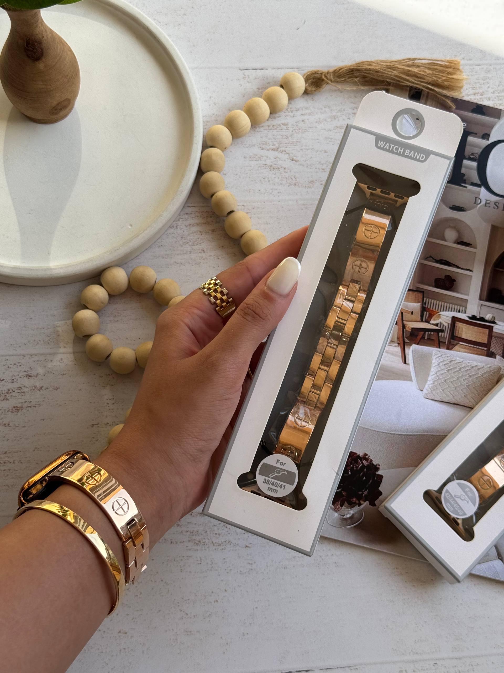 با بند اپل واچ النگویی طلایی کارتیر، ساعت خود را به یک جواهر بینظیر تبدیل کنید. طراحی ظریف و لوکس این بند با رنگ طلایی درخشان، جلوهای شیک به استایل شما میبخشد. مناسب برای هر موقعیتی و ایدهآل برای کسانی که به دنبال ترکیب کمال و زیبایی هستند. اکنون بخرید و جذابیت خود را دوچندان کنید!
