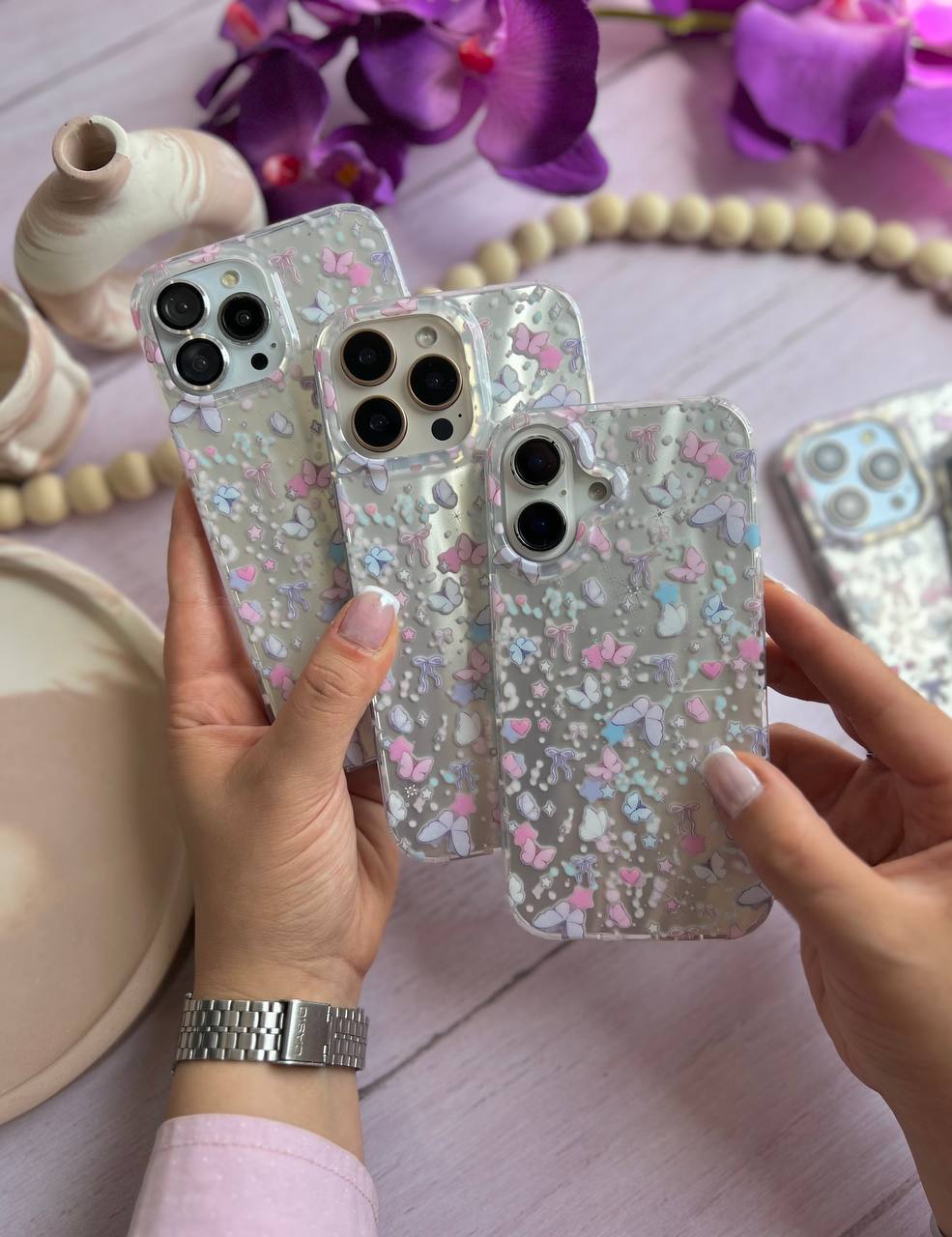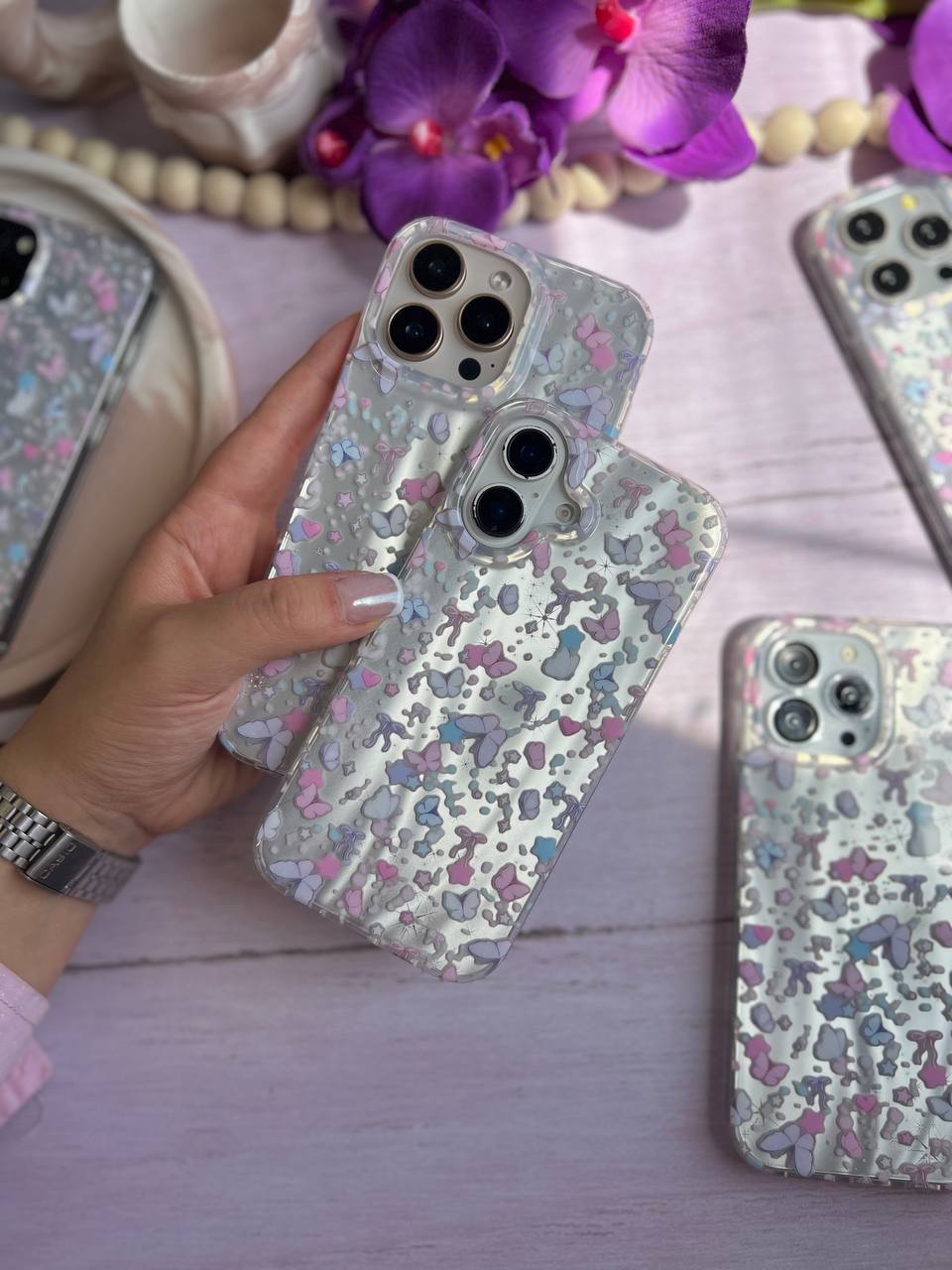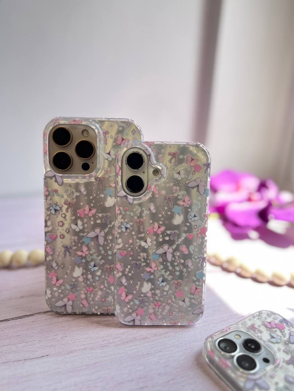 با قاب آیفون پروانه و پاپیون، زیبایی و ایمنی را برای گوشی خود به ارمغان بیاورید! طراحی دلانگیز پروانهها و پاپیونهای لطیف، جذابیت و استایلی منحصر به فرد به گوشی شما میبخشد. این قاب با جنس مقاوم و با کیفیت، محافظت حداکثری را فراهم میکند. همین حالا به گوشیتان جلوهای متفاوت ببخشید!