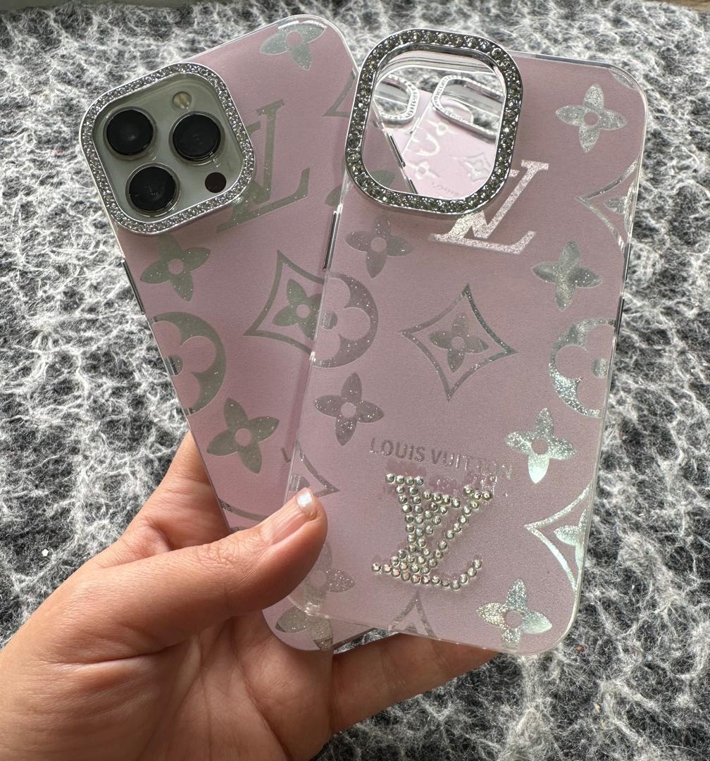 قاب گوشی لویی ویتون نگینی صورتی؛ درخشش لوکس با جزئیات ظریف