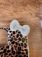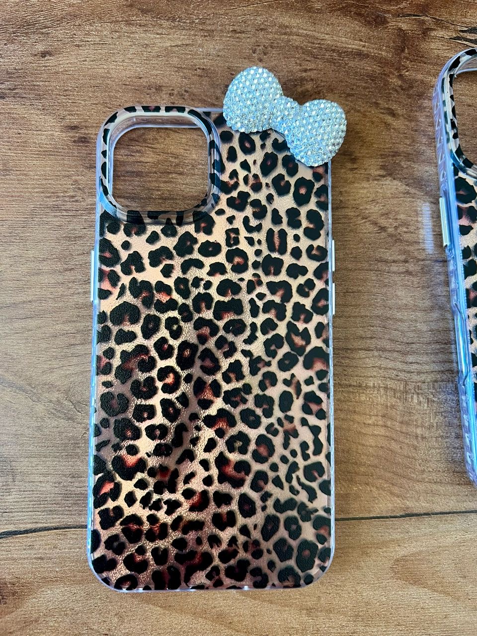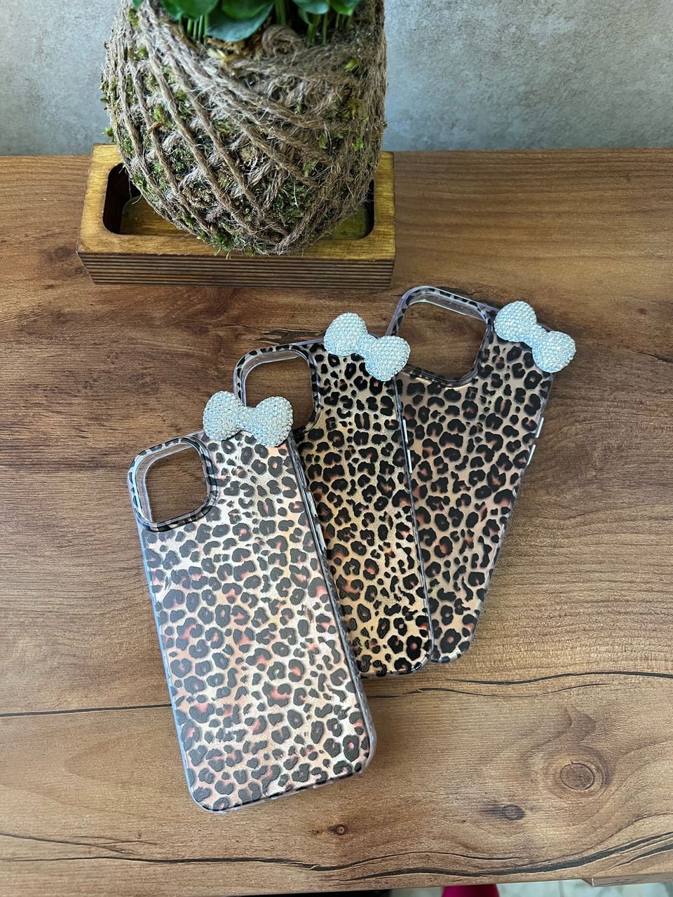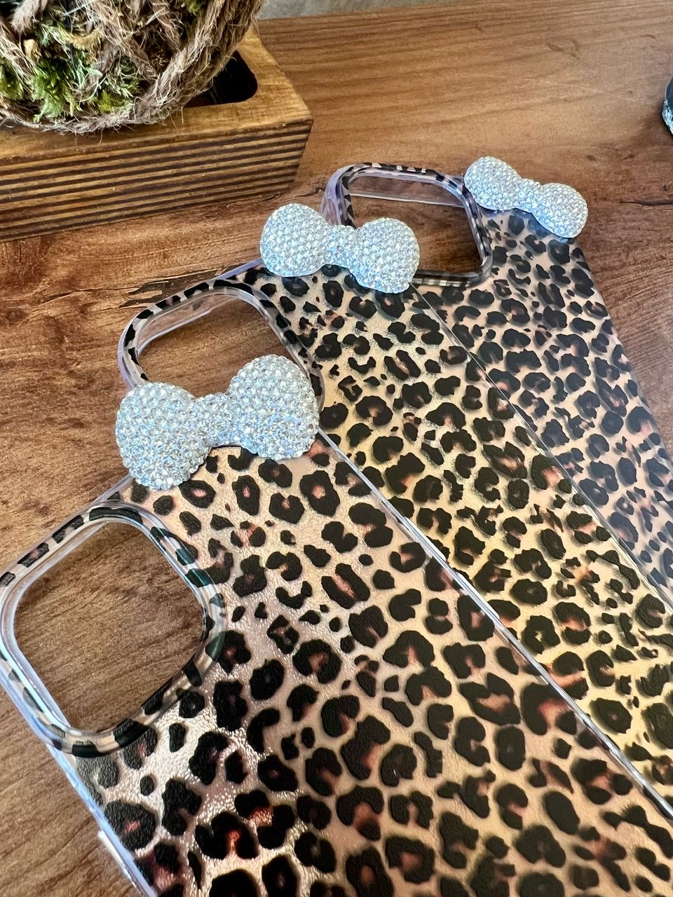 قاب پلنگی براش قهوه‌ای پاپیون نگین‌دار