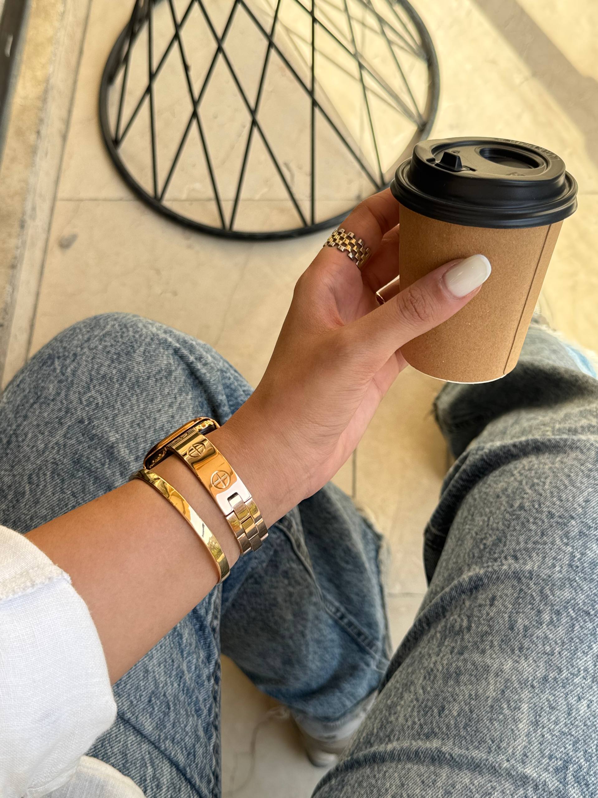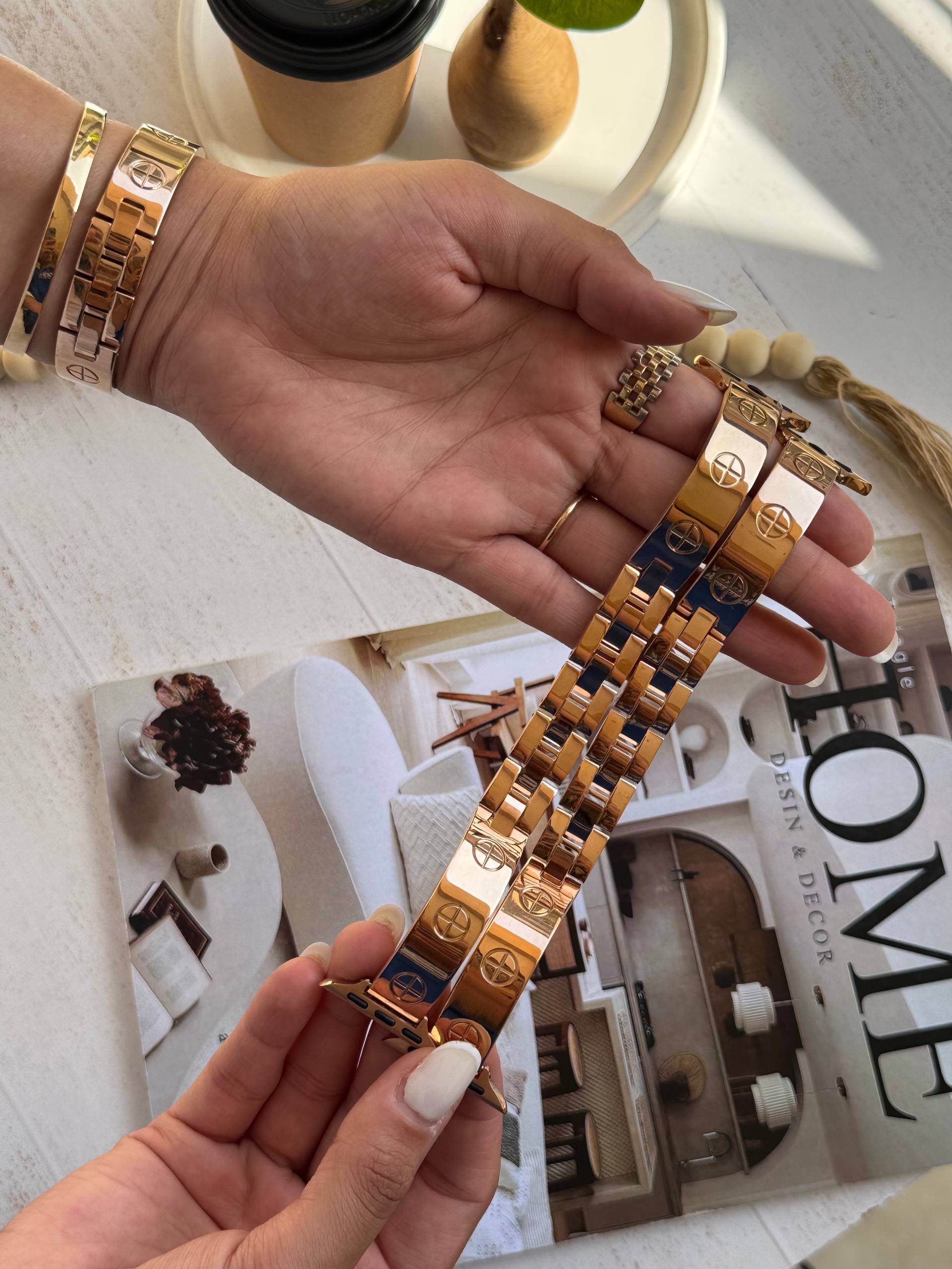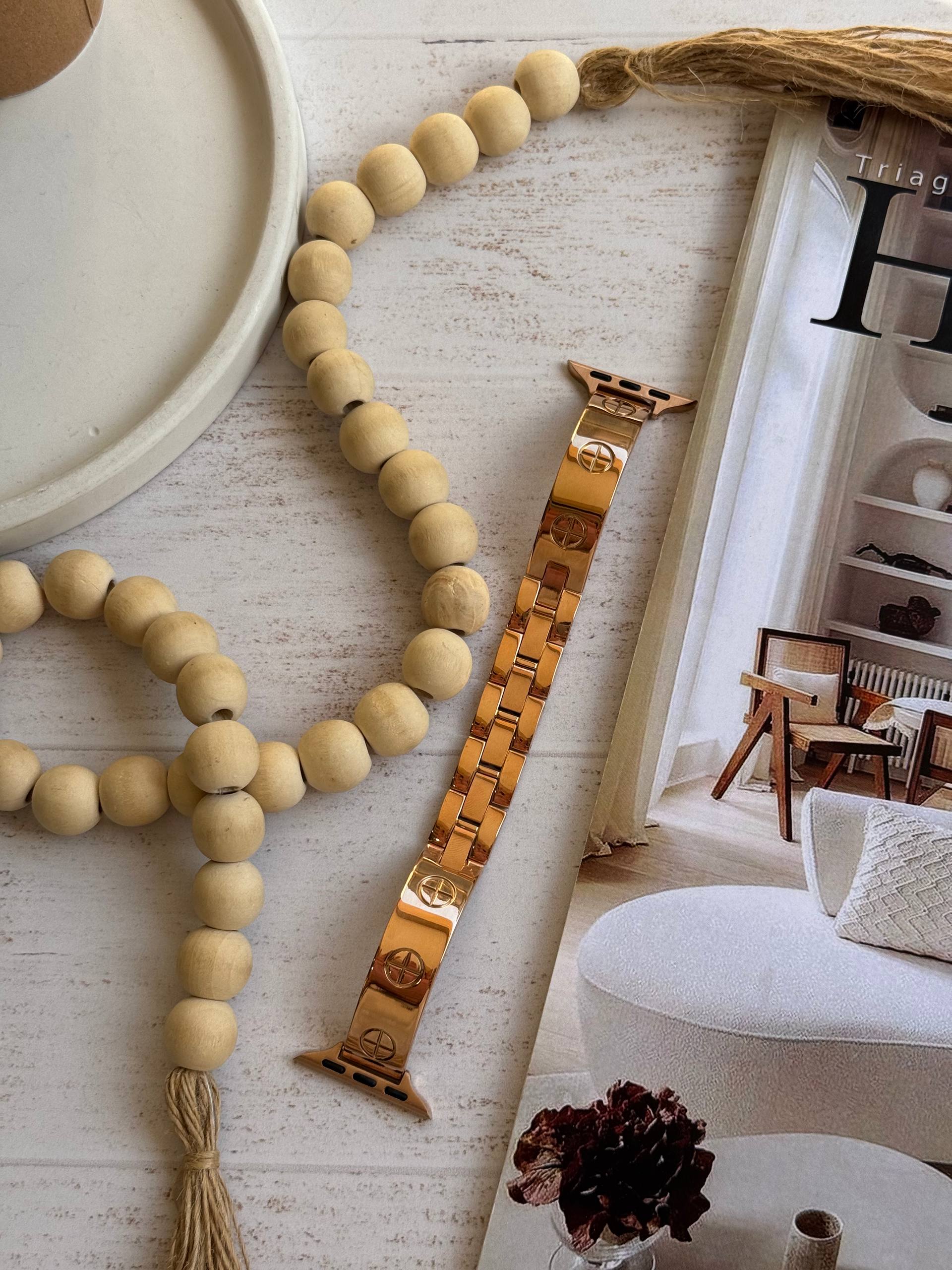 با بند اپل واچ النگویی طلایی کارتیر، ساعت خود را به یک جواهر بینظیر تبدیل کنید. طراحی ظریف و لوکس این بند با رنگ طلایی درخشان، جلوهای شیک به استایل شما میبخشد. مناسب برای هر موقعیتی و ایدهآل برای کسانی که به دنبال ترکیب کمال و زیبایی هستند. اکنون بخرید و جذابیت خود را دوچندان کنید!